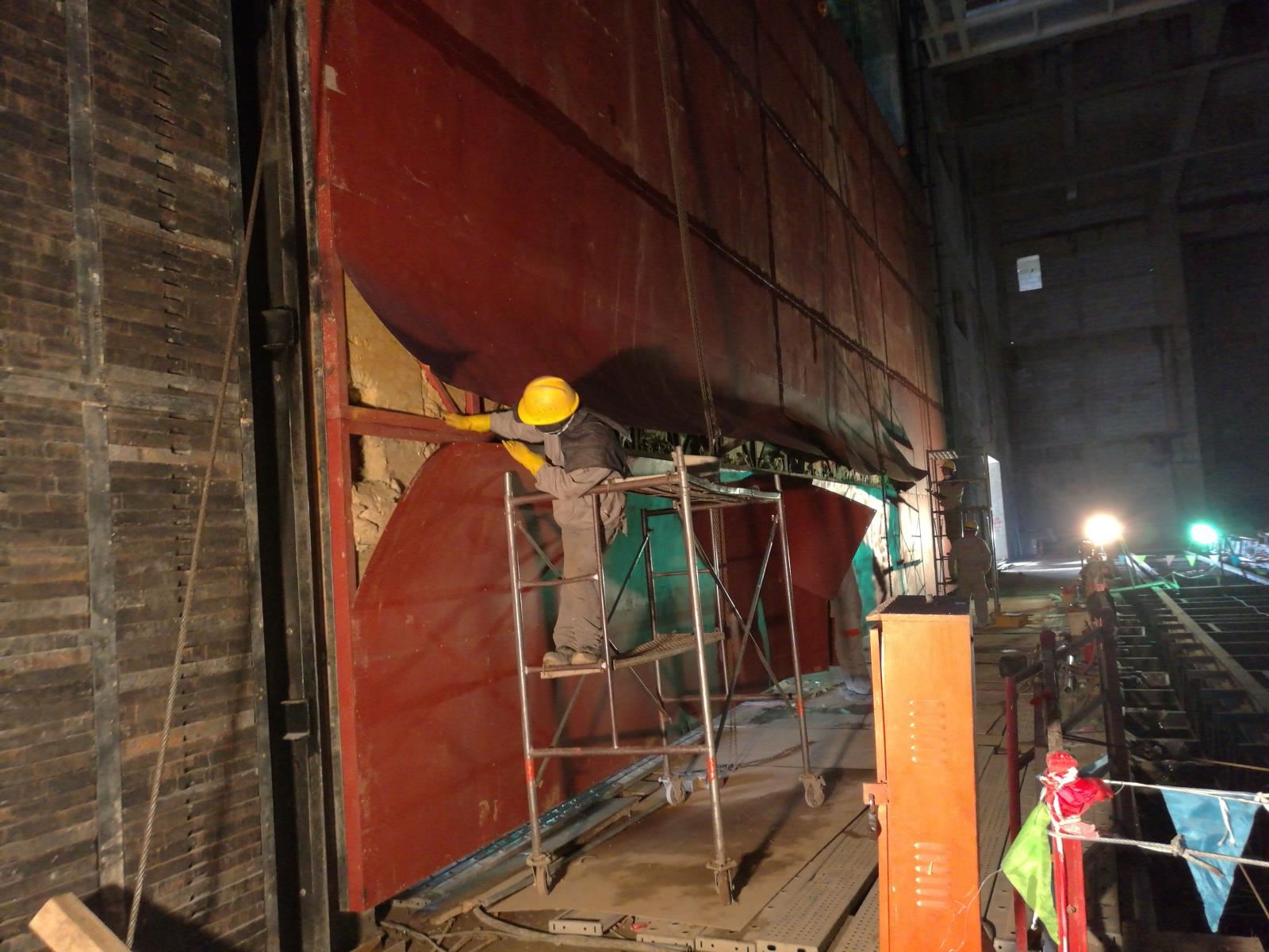 防火幕是一道安全防火專用門,在劇場發(fā)生火災(zāi)事故或每場演出結(jié)束時,該防火幕落下,把舞臺與觀眾廳分隔成兩個防火區(qū)域,或(后舞臺防火幕)將后舞臺與主舞臺區(qū)分隔,或(側(cè)防火幕)將側(cè)舞臺與主舞臺區(qū)分隔。