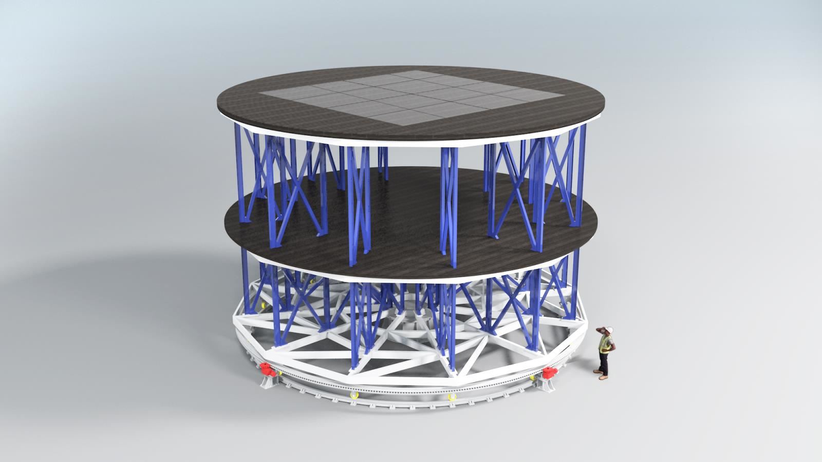 轉(zhuǎn)臺(tái)一般設(shè)置4套驅(qū)動(dòng)系統(tǒng),使轉(zhuǎn)臺(tái)的結(jié)構(gòu)受力更均勻,并確保系統(tǒng)運(yùn)行的可靠性。